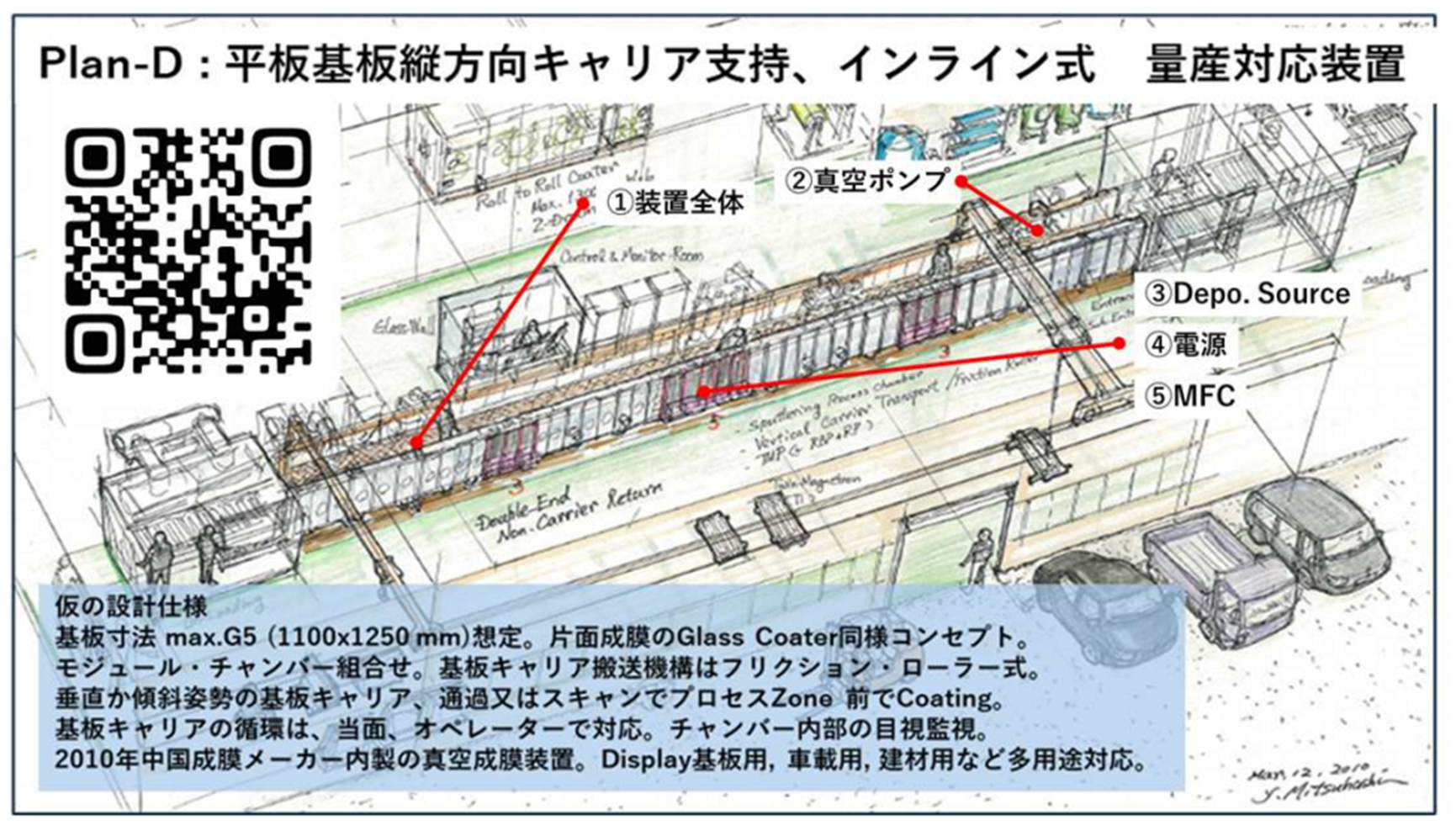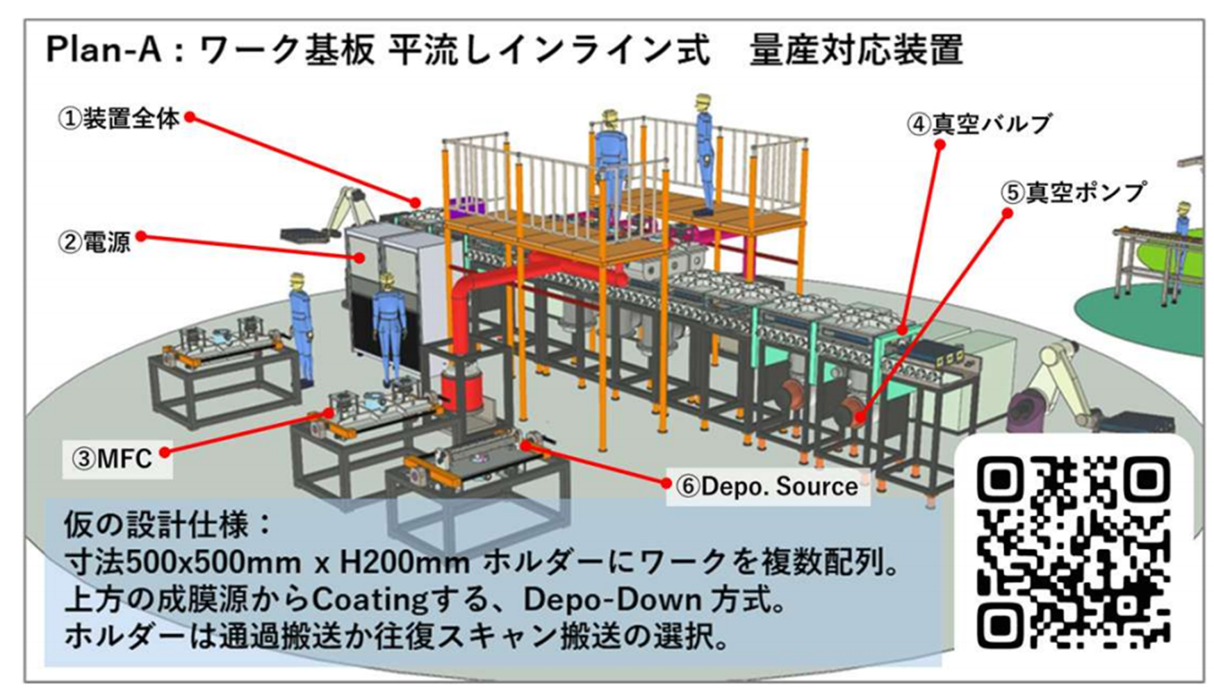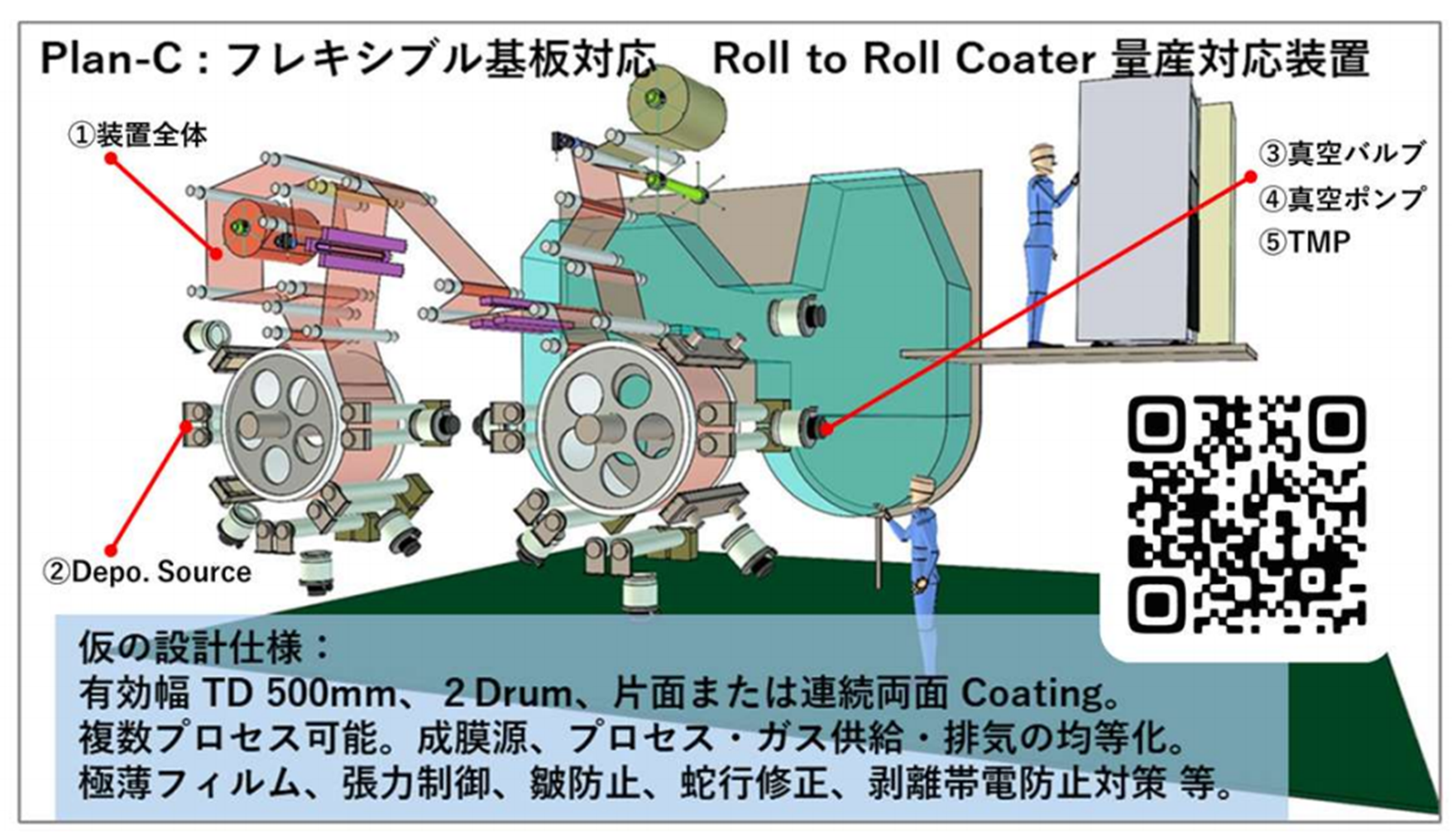 既存の設備の改造検討も対応可能です。もちろん、新規設備導入の場合もあるでしょう。建材用板ガラス表面への多層膜成膜設備のプラットフォームの寿命は30年以上です。成膜源を部分改造して 新規用途に対応させている設備技術が参考になります。