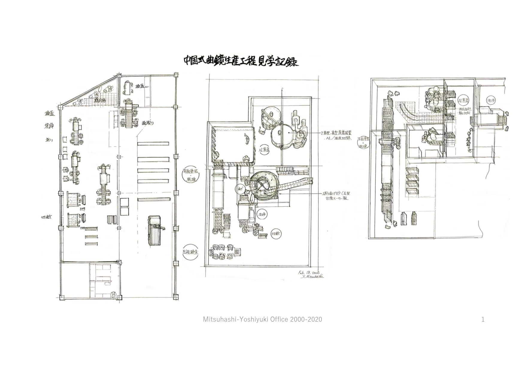 手描きで、完成まで3か月。工場内の物流を追いながら、ボイラー室と女工寮の位置関係、工程間の建屋の間に設けられた中庭の目的。採光と工程バランス調整の床面積増対応。除雪スペース等、レイアウトにも設備にも先人の知恵を発見して、圧倒されました。このストーリーは、海外の顧客の共感が得られます。